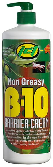 B-10 was designed to protect worker's hands from the damaging effects of exposure to grease, grime, oil, fuel, harsh chemicals and over washing. It will also make it easier to clean dirty hands.
