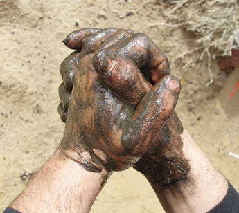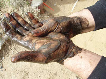 H10 should be worked into the grime by rubbing hands together and then rinsing thoroughly with water.